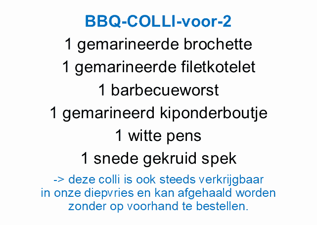 Deze colli is steeds verkrijgbaar in onze diepvries en kan afgehaald worden zonder op voorhand te bestellen!